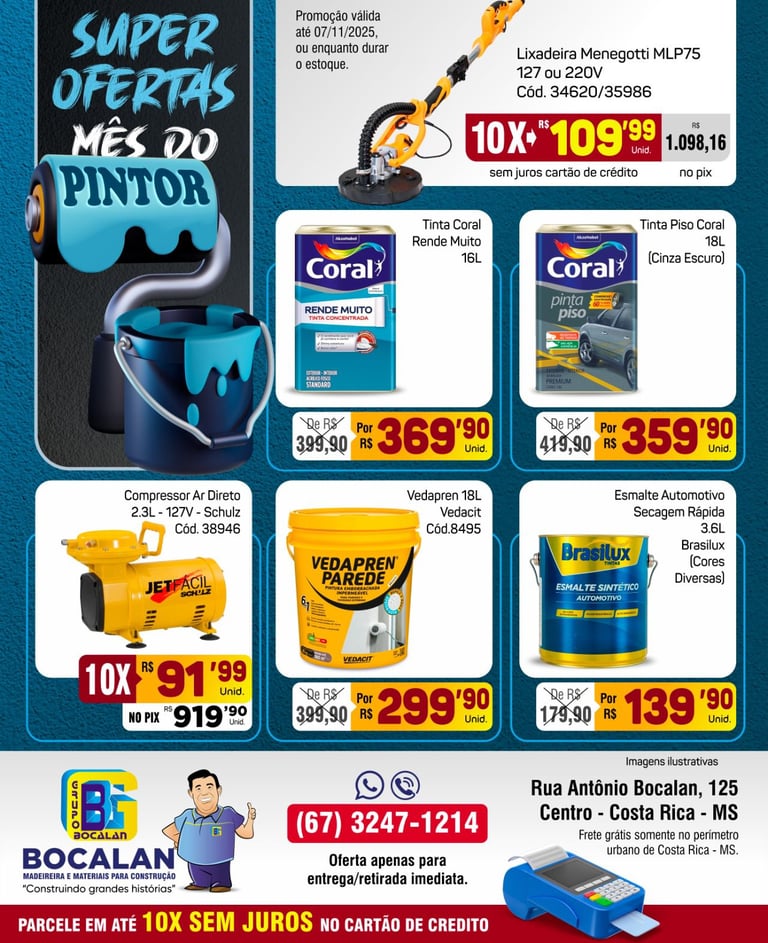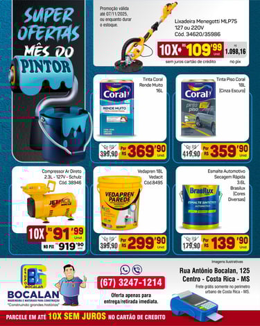 Tem tintas Coral, Vedapren, esmalte automotivo e lixadeira profissional pra deixar tudo ainda mais bonito, com o padrão de qualidade que só a Bocalan oferece. 💙