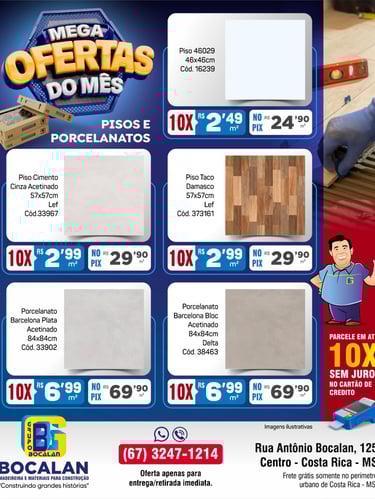 🏠 Já nas Mega Ofertas de Pisos e Porcelanatos, é o momento certo pra dar aquele toque especial na sua casa — com modelos modernos, lindos e com preços que cabem no bolso!