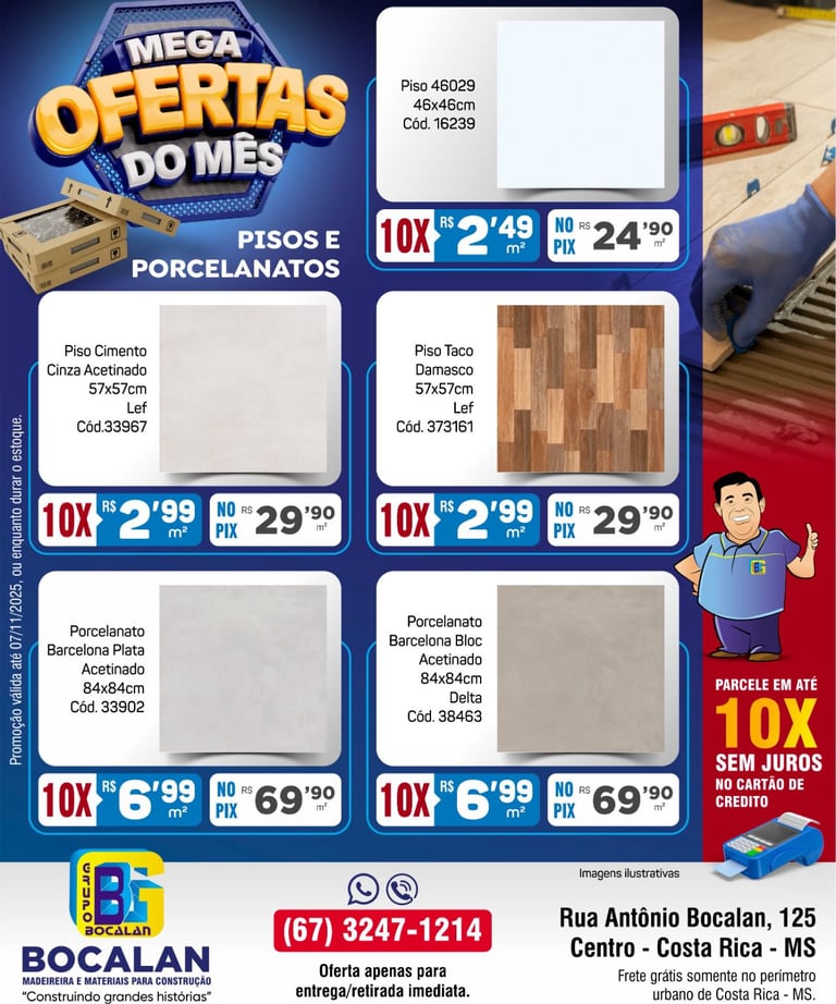 Na Bocalan, oferecemos tudo que você precisa para construir, desde o alicerce até o acabamento, tanto em materiais de construção quanto em madeiras. Com uma vasta gama de produtos com as principais marcas e um atendimento especializado, estamos aqui para apoiar você em cada etapa da sua obra, garantindo qualidade e confiança para transformar seu sonho em realidade. Atendemos toda cidade de Costa Rica-MS e região
